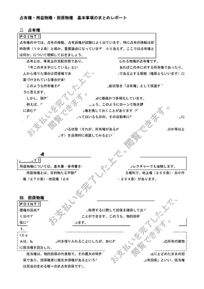 占有権・用益物権・担保物権 基本事項のまとめレポート