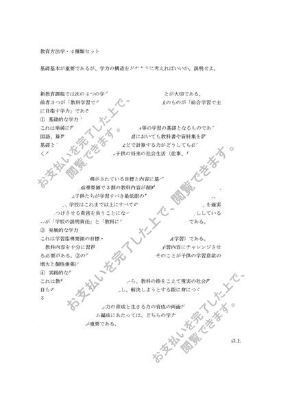 科目最終試験、教育方法学、試験問題&解答4種類セット