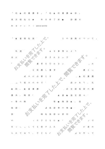 社会的養護Ⅱ【合格】「児童福祉施設と社会資源との連携について」東京福祉大学